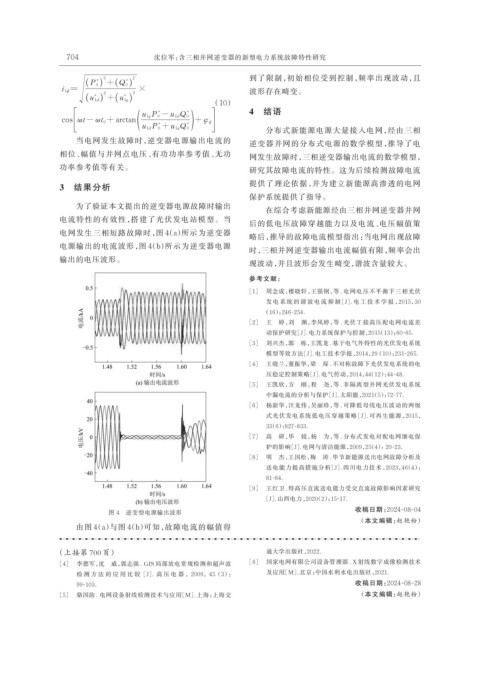 704 沈位军:含三相并网逆变器的新型电力系统故障特性研究
