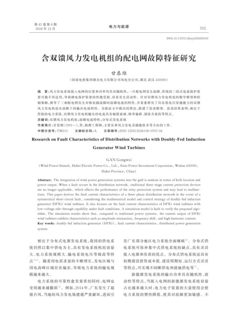 关键词:双馈风力发电机组;故障电流特性;分布式发电系统