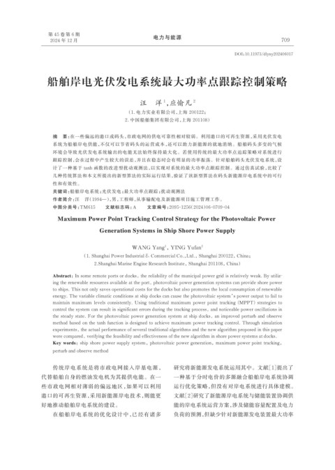 Key words:ship shore power supply system,photovoltaic power generation,maximum power point tracking,