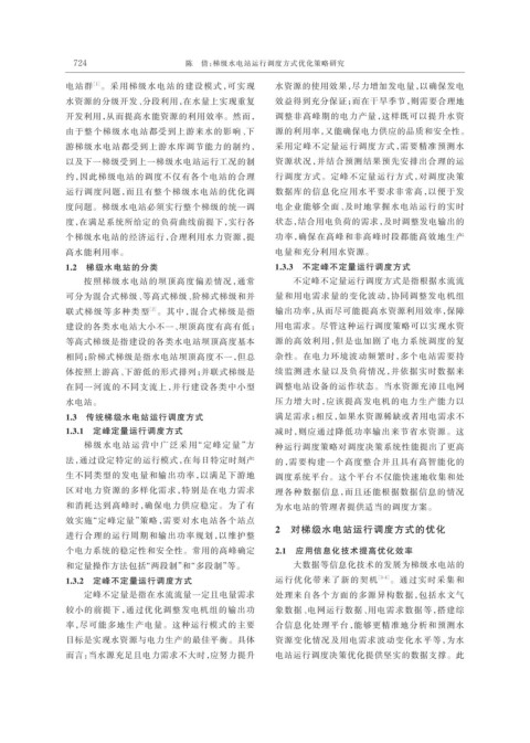 和定量操作方法包括“两段制”和“多段制”等。 大数据等信息化技术的发展为梯级水电站的