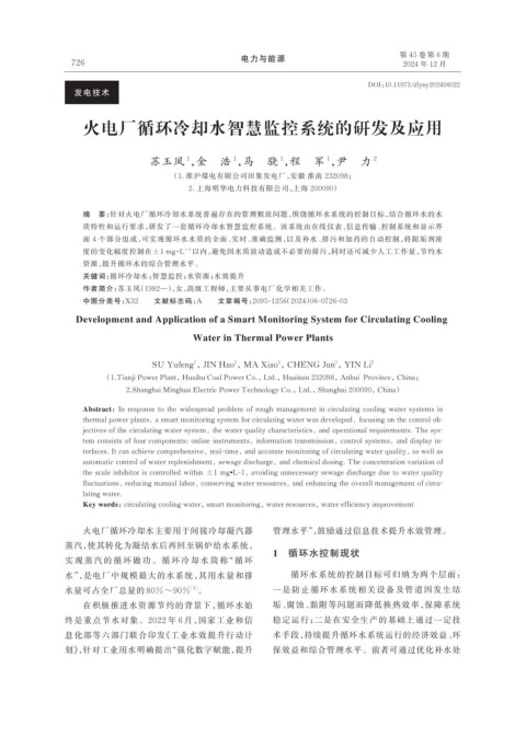thermal power plants, a smart monitoring system for circulating water was developed, focusing on the control ob⁃