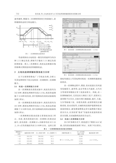 示。在高、低负荷段进行的一次调频 4 次扰动试 3.2 机组二次调频能力分析